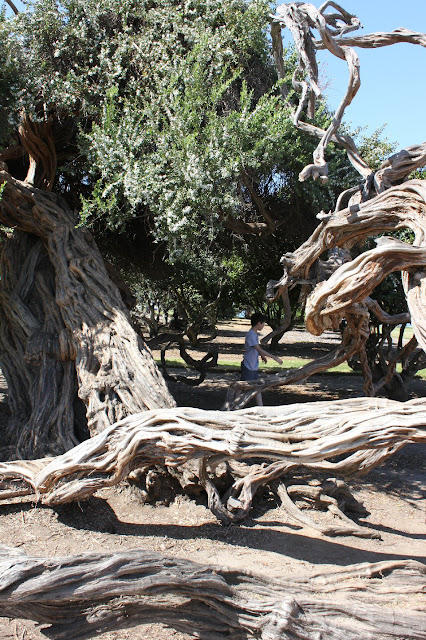 We started our vacation with a driving tour of the city. We started in Scripps Ranch which was our old neighborhood. Then we traveled through University City (where we once had an apartment) and then went to La Jolla where I worked for years. We spent hours in La Jolla enjoying the seals at Children's Beach and played in the park on nature's playground... lots of awesome old trees.