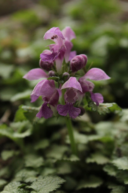 I am going to put one of these little azaleas on each plate before lunch. The silverware is my father-in-law's parents' antique flatware. The plates are pieces I have picked up at thrift shops here and there. I don't use them often, but they are very pretty. To think that this entire table setting as well as the dishes on the buffet are all from thrift stores. I love a good bargain!